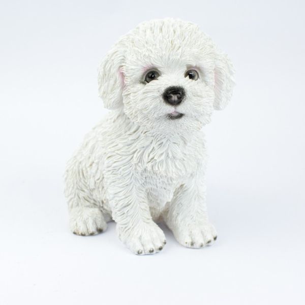 Ομοίωμα σκύλου, από ρητίνη, ράτσας Μαλτέζ Μπισόν Φριζέ (Maltese Brischo Frize) σε λευκό χρώμα.
